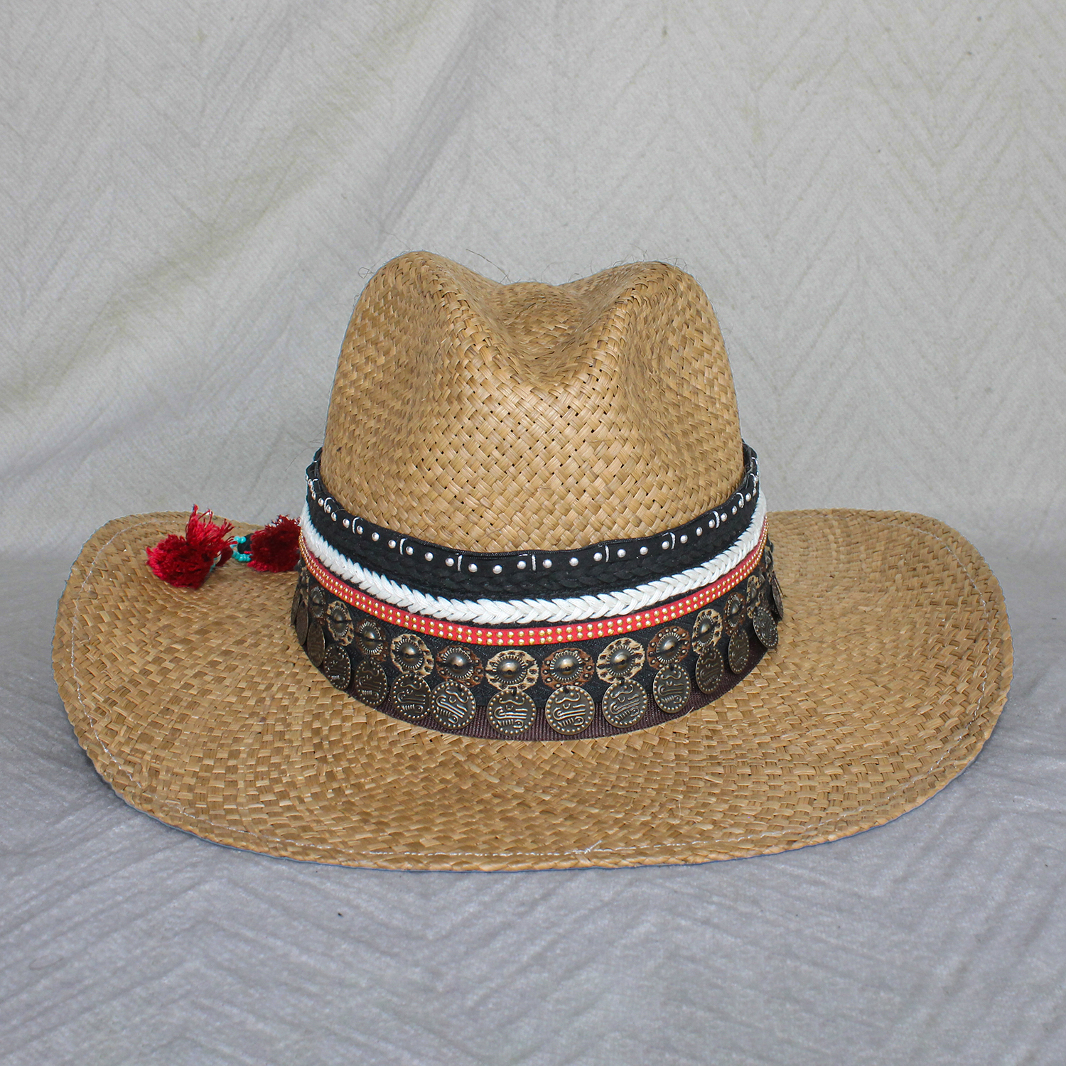 Brown Color Borsalino Hat with Boho Travel Coins Decoration