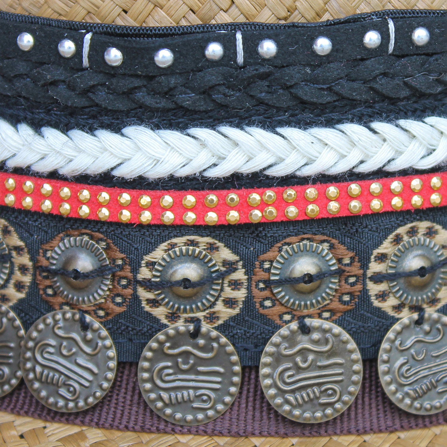 Brown Color Borsalino Hat with Boho Travel Coins Decoration — Hat Size: 55 cmBrown Color Borsalino Hat with Boho Travel Coins Decoration